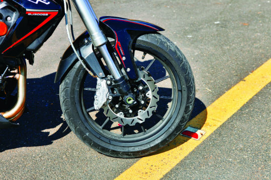 Despite being a compact 300-cc motorcycle, the Benelli gets a pair of petal discs up front and a petal disc at the rear. The brakes have sufficient bite and feel to bring the TNT 300 to a dead halt from any speed. While the brakes work well, what would have been really appreciated would be the presence of ABS. Unfortunately, that particular technology is not part of the Benelli package. Hope the manufacturers review that decision somewhere down the line and change tack in future.