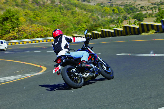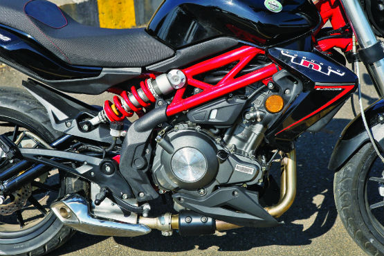 Power delivery from the refined 300-cc parallel twin nestled inside the red painted steel trellis that makes up the TNT 300’s chassis feels good right from the word go and gets progressively better as the revs start to pile on. There’s good grunt available throughout the rev range with the bike pulling cleanly from about 40 km/h all the way up to 100 km/h without breaking into a sweat. That, too, in the sixth gear. Transmission is via a six-speed gearbox and chain final drive. Shifts are smooth and return a good feel too.