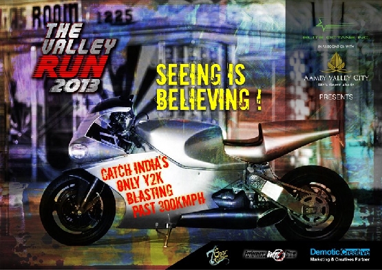 Organised by Elite Octane Inc., Valley Run is slated to become an annual event supported by the Sahara Aamby Valley City – will see the best of the machines, racers, International racers & even the general public participating. The event is also supported by the FMSCI, Performance Racing Store, Seventh Gear Customs & Demotic Creatives. Rickey Gadson – 10 times World Drag Race Champion will also make his presence felt at The Valley Run – by promoting the sport, along with giving valuable tips to participants & will also be doing exhibition runs on his customised ZZR1400. The icing on the cake will be the helicopter engine-powered Y2K’s first ever run on Indian soil. Tickets for the event are now on sale and can be had at: http://www.meraevents.com/event/thevalleyrun-2013