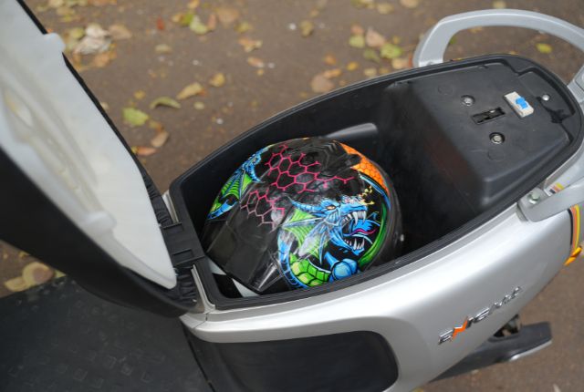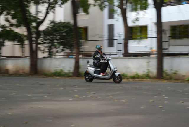The scooter is powered by a 1.2-kW (1.6 hp) hub motor. The power delivery is instant but it will not pass the 65 km/h mark at full chat. But, it will still do 40-42 km/h along with an average-sized pillion. There are three riding modes, but the only noticeable difference between them is a gradual increase in top speed. Under the floorboard, there is a 3.7-kWh lead-acid battery pack. The IDC range of this scooter on the website is 200 km. The battery drains very fast while using mode 3. It takes about 4-5 hours to charge from zero to 100 percent.