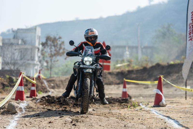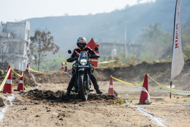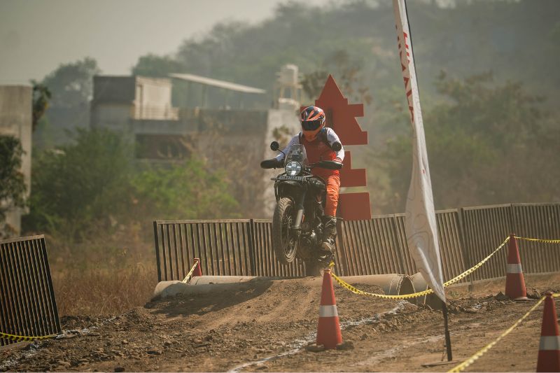 The riding experience was divided into four sections: one obstacle course, a timed off-road lap, a team event, and a navigation trail. The navigation section was particularly interesting. Riders were required to follow a map with very basic instructions such as “turn left after 1.6 km”, or landmarks such as a bridge or a village. It was meant to replicate the kind of navigation challenges riders might face in remote Himalayan regions where signboards and mobile connectivity are rare.