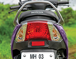 As soon as you take the scooter off its centre stand, the first thing notice is how light it is. This is because all the metal panels that used to be there have now been replaced with plastic ones. It now weighs 103 kg – that’s three kg lighter than the Activa. Which means it’s much easier to flick about in a traffic jam and won’t leave you tired after a ride. It sports the same 109-cc engine and comes with HMSI’s HET. So now with the reduction in weight, the acceleration is very impressive and the scooter returns pretty good mileage too. HMSI’s combination brake system is also standard in the Activa i, making the braking distance substantially shorter and, unlike the Activa, if you engage the rear brake the front brake lever doesn’t compress, but you can feel the tension reduced due to it automatically being engaged. The suspension on the Activa i feels harder than we’d like it to be, but, owing to its lighter weight, this is understandable.