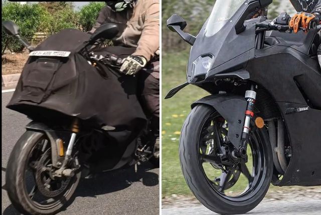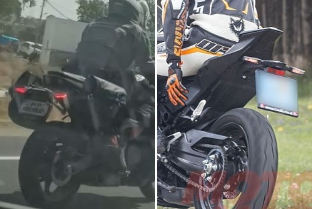 First of all, the KTM 490 has already been spied testing overseas last year, so for it to be tested in India is the natural progression. More important, however, are the visual similarities. From the front, the KTM 490’s centrally mounted LED projector–like the 990 RC R–which could be what’s under the flap on the camouflaged test bike. Next, the RC 490 has winglets, which could be what seem to be stretching the fabric cover on the test mule. Lower down, the position of the fairing-mounted indicator, too, is similar. And the design of the alloy as well as the hubless front disc seem identical, though the disc is mounted on the left on the test bike, as opposed to the test RC’s right side.