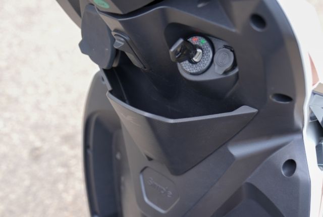 Let’s start with the design. The scooter is clearly youth-focused, sharp, and packed with aerodynamic elements. Ducts, vents, and flowing curves dominate the bodywork, giving the impression that someone like Adrian Newey had a say in the process. Highlights include vents designed to cool the instrument console and an apron-mounted air duct that adds both visual drama and aerodynamic intent. Build quality is impressive, with no cheap-looking plastics or noticeable panel gaps anywhere. That said, the toggle switches require a firm press to operate, which feels slightly out of character in an otherwise well-finished scooter. More on that later. Practicality hasn’t been overlooked either. The 35-litre underseat storage is generously sized and easily accommodates a half-face helmet. A small full-face helmet may fit, but anything larger prevents the seat from latching properly.