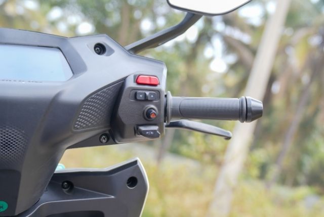 The switchgear layout adds to the learning curve. On the right side, a single toggle switch is tasked with three functions: cruise control, reverse mode, and live location sharing, which can be confusing. The switches also require a firm press, making seamless operation difficult even when you know what each control does. On the left, another toggle is placed between the indicator and horn switches, leading to frequent accidental inputs. These toggles are meant to control music, traction control, and regenerative braking when the touchscreen is disabled on the move. However, once Bluetooth is connected, the toggles are limited to music control alone, restricting access to ride-related functions.
