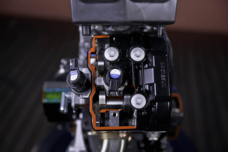 The 75-degree, DOHC, liquid-cooled V-twin engine comes from the RC8 R sports bike and keeps that model’s cylinder dimensions, 1,195 cc capacity and twin-plug head design. But it’s comprehensively updated, with re-designed camshafts (lighter and thinner, as well as with softer timing) and followers, plus new lightweight pistons whose skirts have a hard-anodised coating. Bottom-end changes include a re-designed gearbox with a lower first ratio and a new slipper clutch that incorporates a servo effect, allowing a much lighter lever action.