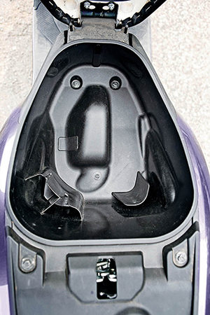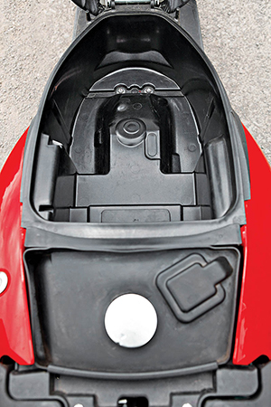 The Activa i has the highest ground clearance among the three scooters being considered here, but its seat height (765 mm) lies between that of the Ray Z (760 mm) and the Wego (770 mm). There is more knee-room on the Activa i due to its higher steering column and an upright front apron while the seat is long enough to accommodate two riders comfortably.