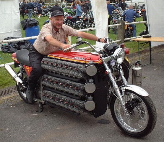 However, while almost all of these are production models, putting engines of these sizes on motorcycles is something very few have witnessed. Many have tried installing large car engines in motorcycles and quite a few have managed to pull it off. However, a certain Mr. Simon Whitelock has done what few have even imagined, let alone thought possible – a massive 48-cylinder engine on a Kawasaki – built for the Triples Rally back in 2004.