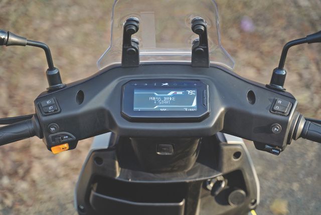 Once out of the bylanes, you switch to City mode. The acceleration now feels more brisk, and you see 65 km/h (or a bit more, downslope) on the LCD console. The light scooter allows you to overtake effortlessly, while the large mirrors offer a clear view out back. However, spirited riding exposes more chinks in the Orbiter’s armour. The skinny tyres, good when filtering through traffic at slower speeds, seem skittish over patchwork and may even tram-line over expansion joints. The wind noise, too, seems to amplify, along with an inconsistent buzz; the ungainly flyscreen is the culprit in both cases.