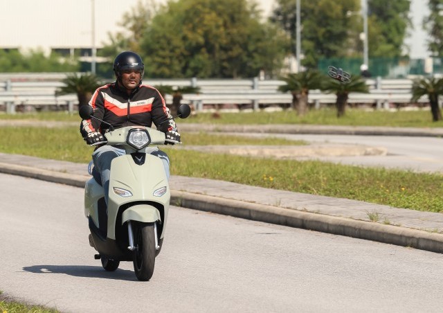 Next up was the moto-scooter-like Feliz. It is positioned as a fashionable and modern scooter targeted at the stylish youth. Like the Evo Grand it also packs a lithium ferro-phosphate (LFP) battery pack but offers more power: 2.8 kW (3.81 hp) and a higher top speed of 78 km/h. It can travel up to 198 km on a single charge. It feels larger but still quite nimble, with easy controls and a no-nonsense digital display.