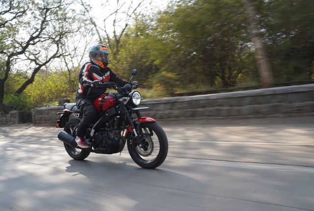 Powering the XSR 155 is the same engine last seen on the YZF-R15, MT-15, and Aerox 155. This 155-cc, liquid-cooled, SOHC, four-valve, single-cylinder motor produces 18.4 hp and 14.2 Nm. Performance is great at the low end, with a healthy mid-range that makes the bike easy and engaging to ride. However, once past around 7,500 rpm, vibrations begin to creep in. The six-speed gearbox does its job but isn’t the slickest. Shifts feel slightly hard, particularly between first, second, and third. That said, the engine’s tractability is impressive. The XSR 155 can comfortably pull from very low speeds even in higher gears. On one occasion, I came to a halt at a gentle uphill intersection in second gear without realising it, and the bike pulled away smoothly without hesitation. The kerb weight of the XSR 155 is just 137 kilograms. So, the power-to-weight ratio is about 134.30 hp per tonne. This gives the motorcycle a massive advantage over its competitors. Apart from that, the instrument console also features a litre/100 km fuel efficiency meter. We got a decent 2.5 litre/100 km fuel efficiency which translates to 40 km/l.
