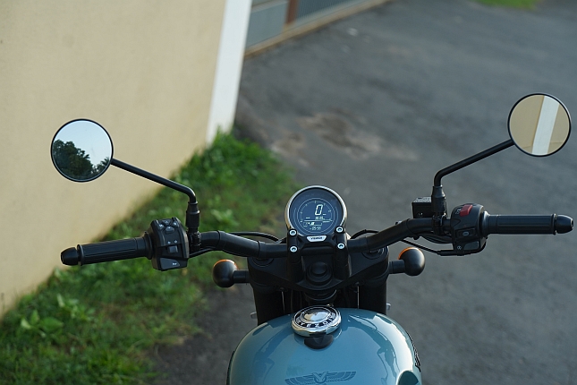Before getting on to the highway, I switched from “Normal” to “Power” mode, as it is something that needs to be done below 30 km/h. After finally reaching open roads, I twisted the throttle to gather speed. In Power mode, the acceleration response felt marginally better, and the Roadster could now attain triple-digit speeds, being restricted to 100 km/h in Normal mode. It stayed calm and composed. The solo seat offered good comfort, and the ergonomics felt spot on. The slightly forward-set foot-pegs and a wider handlebar made for a relaxed riding position. The gearshifts were smooth, and the brakes had perfect stopping power, which felt reassuring throughout the ride. While at highway speed, I needed to rein in the bike quickly, and the Roadster slowed down in a controlled manner.